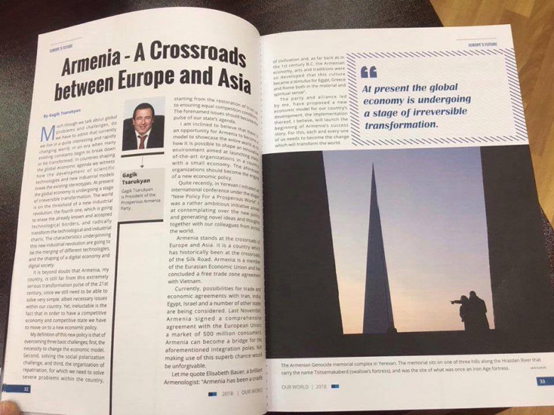 ԲՀԿ ղեկավար Գագիկ Ծառուկյանը ծավալուն հոդվածով է հանդես եկել համաշխարհային հեղինակավոր ամսագրերից մեկին