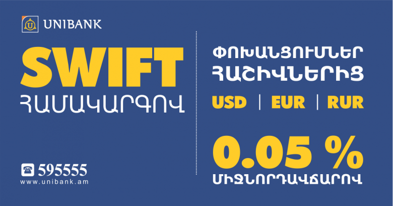 Նոր ակցիա` Յունիբանկն առաջարկում է SWIFT-ով փոխանցումներ ընդամենը 0.05 % սակագնով