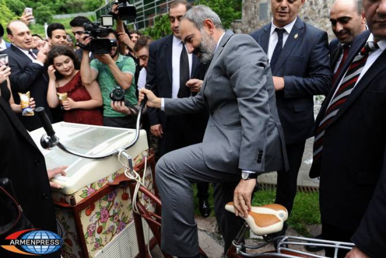 Վարչապետը պաղպաղակ տեղափոխող հեծանիվ վարեց Դիլիջանի միջազգային դպրոցի բակում