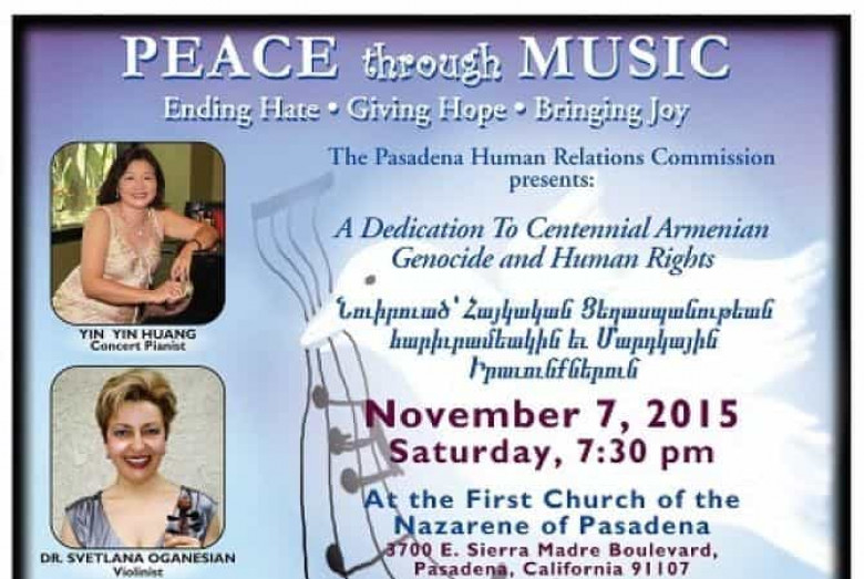 ՄԻՋԱԶԳԱՅԻՆՓասադենայի Մարդկային հարաբերությունների հանձնաժողովն իր ամենամյա 17-րդ «Խաղաղություն երաժշտության միջոցով» համերգը կնվիրի Հայոց ցեղասպանության հարյուրերորդ տարելիցին: