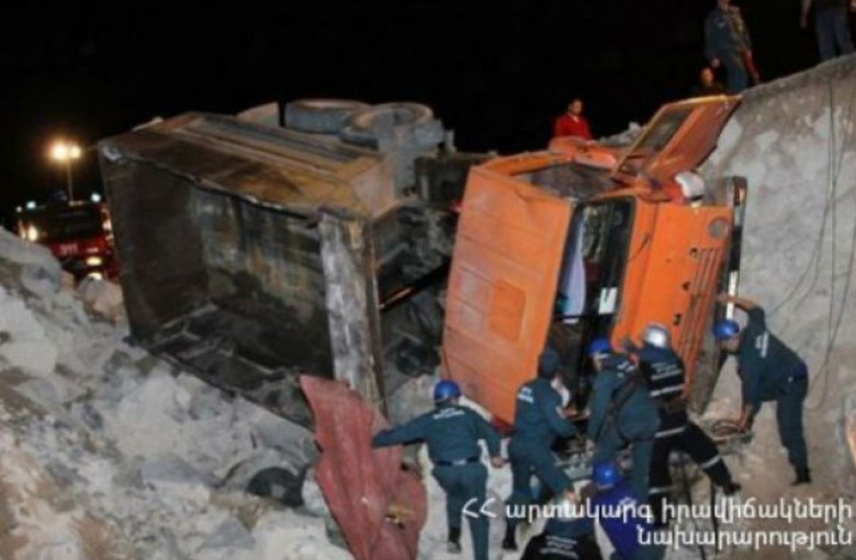 Դիլիջանի ոլորաններին բեռնատարը դուրս է եկել ճանապարհի երթևեկելի հատվածից և կողաշրջվել