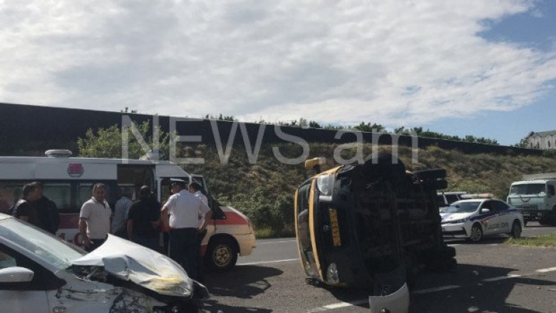 «Արծվի թևեր»-ի մոտ բախվել են «Ֆոլքսվագեն»-ն ու մարդատար «ԳԱԶել»-ը. վերջինը շրջվել է. տուժել են երեխաներ (ֆոտո)