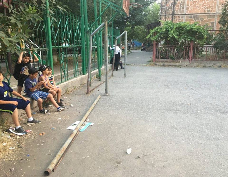 Երբ մենք զանգահարեցինք Էրեբունի վարչական շրջանի թեժ գիծ, աշխատակցուհին, տեղեկանալով դեպքի մասին, նշեց, որ խաղահրապարակների վերահսկողությունը համատիրության իրավասությունների ներքո է: Փոխանցեց մեզ այդ համատիրության կառավարչի՝ ոմն Հայկի հեռախոսահամարը: Զանգեցինք, վերջինս պատասխանեց, որ իրենց գործառույթների մեջ է մտնում միայն բազմաբնակարան շենքերի կառավարումն ու սպասարկումը: