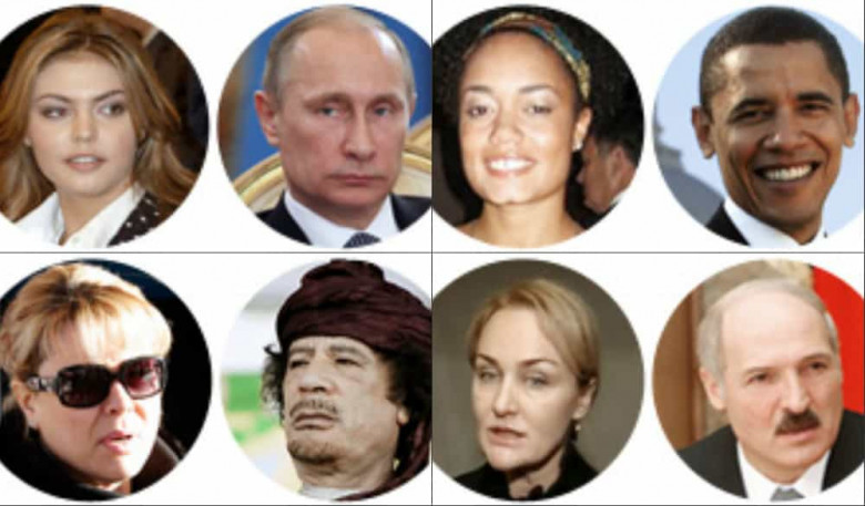 Ալինա Կաբաևա և Վլադիմիր Պուտին. Թե ռուսական , թե արտասահմանյան մամուլում հաճախ են լուրերը, որ պատգամավոր և գիմնաստ Ալինա Կաբաևան ու Վլադիմիր Պուտինը սիրավեպ ունեն: Լուրերի համաձայն՝ Կաբաևան զույգ երեխաներ է պարգևել Պուտինին և նրանք ապրում են միասին՝ Սոչիում: Ամեն դեպքում այս լուրերը ոչ մի կերպ չեն հաստատվել:
