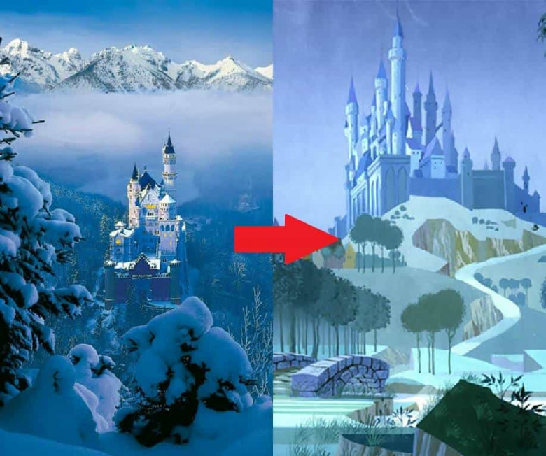«Քնած գեղեցկուհի» անիմացիոն ֆիլմի արքայական դղյակը ներշնչված է Գերմանիայի Բավարիա բնակավայրում գտնվող Նոյշվանշտայն դղյակից։ Այս դղյակը կառուցվել է Բավարիայի Լյուդվիգ երկրորդ արքայի կողմից 1892թ.-ին որպես անձնական նստավայր՝ ի պատիվ Ռիչարդ Վագների՝ իր սիրելի երաժիշտի։ Լյուդվիգ երկրորդը հայտնի արվեստասեր էր, ով բազմաթիվ գեղեցիկ կառույցներ է ժառանգություն թողել Բավարիայի տարածքում իր մահից հետո։