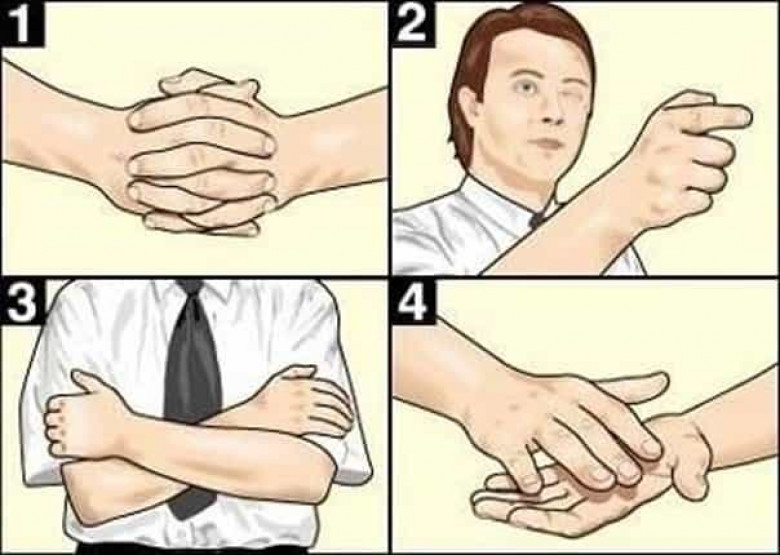 ԼԱՅՖ1.Փակեք ձեռքերը կողպեքի նման (ինչպես պատկերված է 1 նկարում): Եթե վերևում ձախ ձեռքի բթամատն է, ապա թղթի վրա գրեք «Ձ», հակառակ դեպքում` «Ա»: