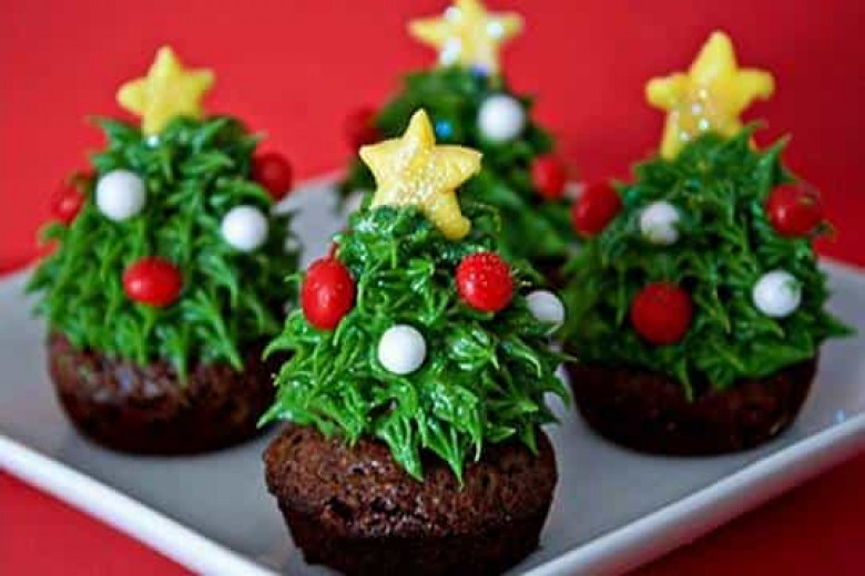 Տոնածառ-կեքս: Անհրաժեշտ է՝ կեքսեր, ելակ, կանաչ կրեմ:
