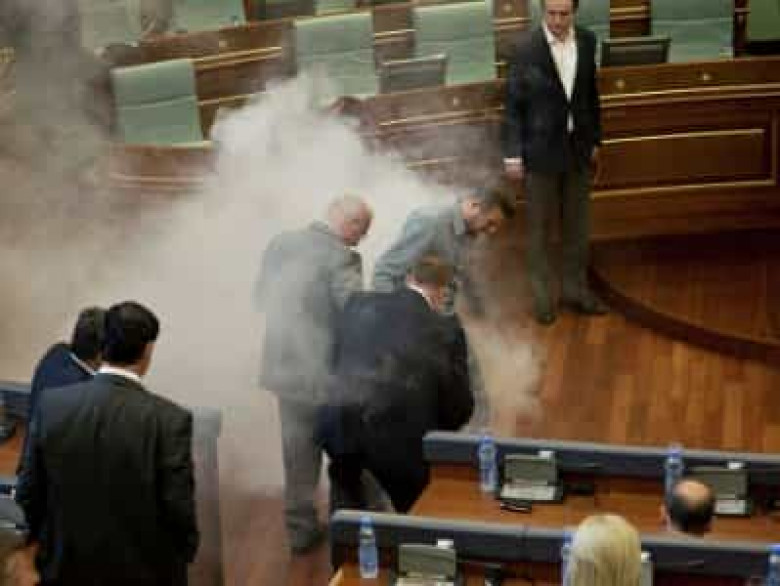Երեքշաբթի չճանաչված պետության խորհրդարանը պիտի քննարկեր 2016 թվականի բյուջեն: Նիստի սկզբին «Ինքնորոշման» պատգամավորները շրջապատել էին ամբիոնը: Երբ իշխող` Կոսովոյի ժողովրդավարական կուսակցության խորհրդարանական խմբի ղեկավար Ադեմ Գրաբովցին փորձել էր սկսել աշխատանքը, «Ինքնորոշման» առաջնորդ Ալբին Կուրտին Խորհրդարանի պահապանների եւ ներկա նախարարների ուղղությամբ պղպեղի փոշի էր ցանել: Միաժամանակ ընդդիմության պատգամավորների խմբից դահլիճ էր նետվել արցունաբեր գազով պայթագլան: Կոսովոյի խորհրդարանի նախագահը ստիպված էր եղել ընդհատել նիստը: