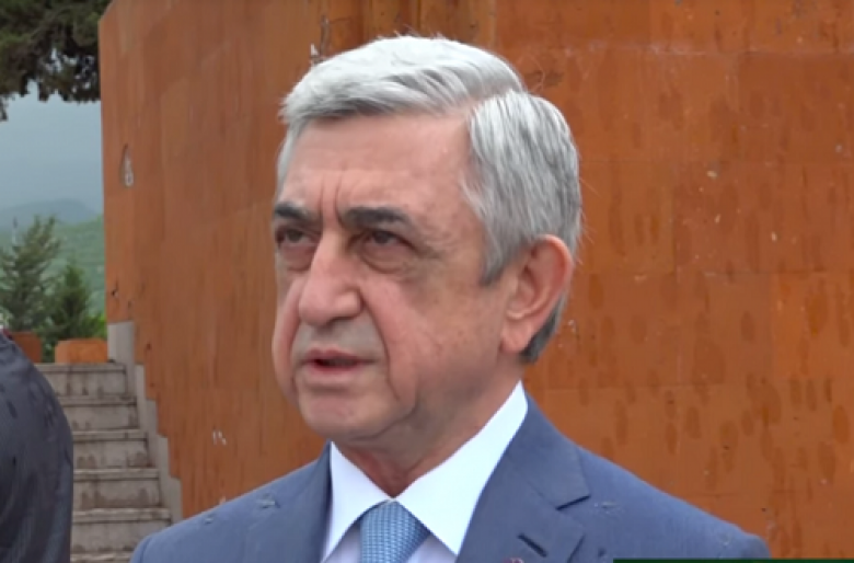 ՀՀ երրորդ նախագահ Սերժ Սարգսյանը եռատոնի առիթով թոռան հետ և մարտական ընկերների ուղեկցությամբ այցելել է Ստեփանակերտի հուշահամալիր և պատասխանել Արցախի Հանրային հեռուստաընկերության լրագրողի հարցերին: