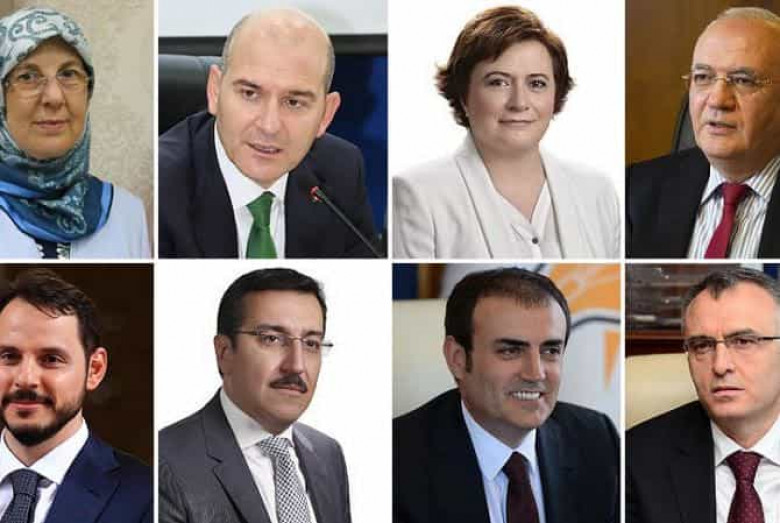 Թուրքիայի կառավարության նոր անդամներն են Սեմա Ռամազանօղլուն (Ընտանիքի եւ սոցիալական քաղաքականությունների նախարար), Սուլեյման Սոյլուն (Աշխատանքի եւ սոցիալական անվտանգության նախարար), Ֆաթմա Գյուլդեմեթ Սարըն (Շրջակայքի եւ քաղաքաշինության նախարար), Մուստաֆա Էլիթաշը (Էկոնոմիկայի նախարար), Բերաթ Աքբայրաքը (Էներգետիկայի եւ բնական պաշարների նախարար), Բյուլենթ Թյուֆենքչին (Մաքսային եւ առեւտրի նախարար), Մահիր Ունալը (Մշակույթի եւ զբոսաշրջության նախարար) եւ Նաջի Աղբալը (Ֆինանսների նախարար):