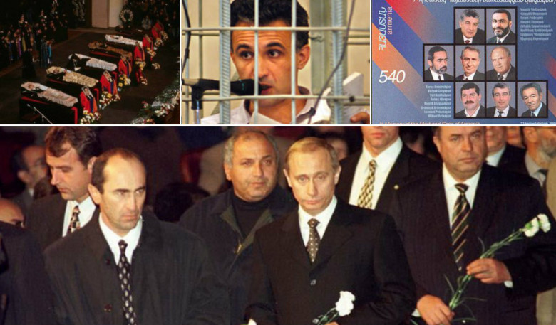 20 տարի առաջ տեղի ունեցած ոճրագործության արդյունքում զոհվեցին ՀՀ ԱԺ նախագահ Կարեն Դեմիրճյանը, ՀՀ վարչապետ Վազգեն Սարգսյանը, ԱԺ փոխնախագահներ Յուրի Բախշյանը եւ Ռուբեն Միրոյանը, ԱԺ պատգամավորներ Արմենակ Արմենակյանը, Հենրիկ Աբրահամյանը, Միքայել Քոթանյանը եւ օպերատիվ հարցերով նախարար (փաստացի իրականացրել է փոխվարչապետի գործառույթներ) Լեոնարդ Պետրոսյանը: