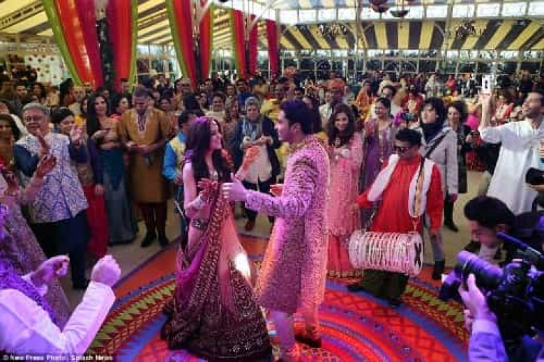 Լոնդոնում ծնված հարսնացուն, ինչպես թելադրում են հնդկական ավանդույթներ, հագել է հնդկական շքեղ սարի, իսկ ձեռքերին հինայով դաջվածք արել։