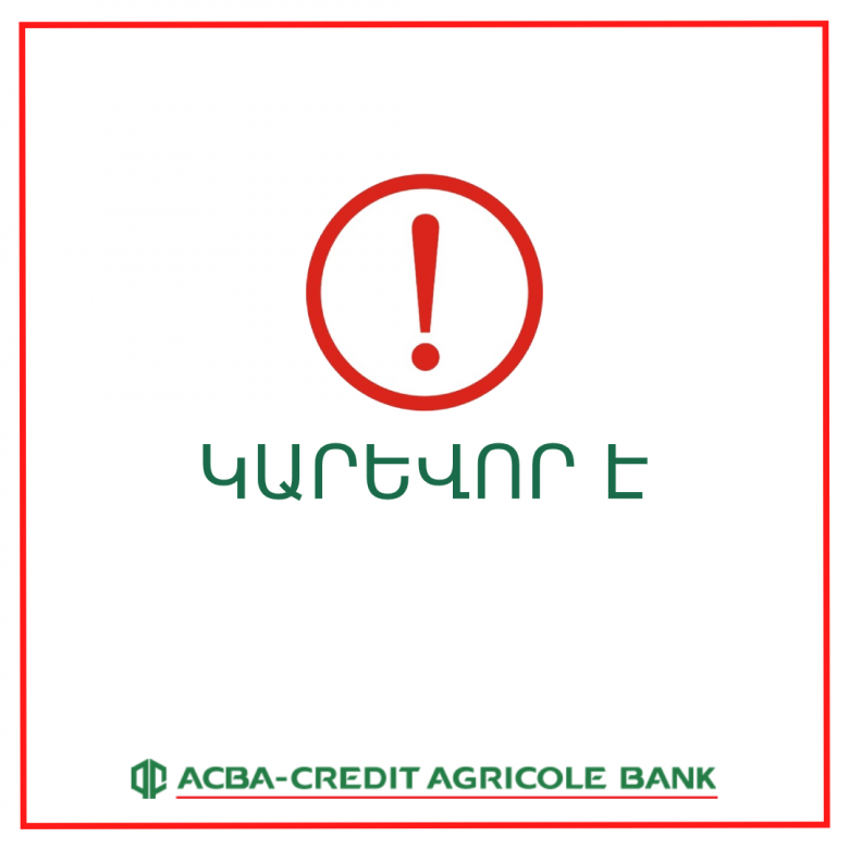 Խնդրում ենք բանկի մասնաճյուղեր մոտենալ միայն խիստ անհրաժեշտության դեպքում: Այն բոլոր դեպքերում, երբ,այնուամենայնիվ Ձեզ գործարք իրականացնելու համար անհրաժեշտ է այցելել բանկի մասնաճյուղ, կրկին խնդրում ենք պահպանել հետևյալ կանոնները՝