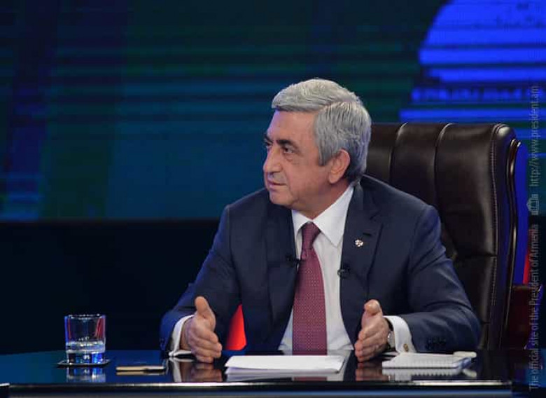 ՔԱՂԱՔԱԿԱՆՆախագահ Սերժ Սարգսյանը դեկտեմբերի 2-ի երեկոյան ծավալուն հարցազրույց է տվել հայաստանյան հեռուստաընկերությունների ներկայացուցիչներին՝ պատասխանելով նրանց բազմաթիվ հարցերին, որոնք հիմնականում վերաբերել են ՀՀ Սահմանադրության փոփոխություններին` դրանց նախաձեռնման անհրաժեշտությանն ու նպատակին, պետության համար այդ փոփոխությունների կարևորությանը, Մայր օրենքի բարեփոխմանը դեմ արտահայտվողների փաստարկներին ու դրանց հիմնավորվածությանը և այլն: Լրագրողները Նախագահից հետաքրքրվել են նաև օրերս իրավապահ մարմինների կողմից մայրաքաղաքում իրականացված հատուկ գործողության և ՀՀ ԱԱԾ քննչական վարչությունում հարուցված քրեական գործի նախաքննության ընթացքի մասին: