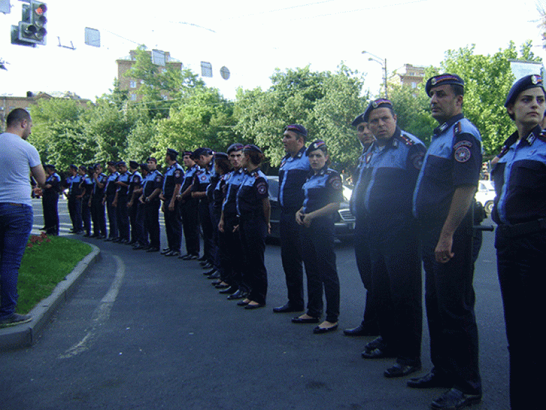 ՀԱՍԱՐԱԿՈՒԹՅՈՒՆԲաղրամյան պողոտայում հերթապահություն իրականացնող ոստիկանները հերթափոխ իրականացրին: Շարքերը նոսրացել են, ընդամենը մեկ շարքով են կանգնած ոստիկանները: Հնչում են ռազմահայրենասիրական երգեր: