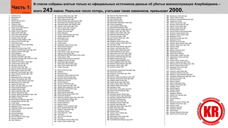 Քանի որ ադրբեջանցիները իրենց զոհերի իրական քանակը ու անունները չեն հրապարակում, մերոնք հատուկ իրենց համար հավաքել են 243 չհայտարարված զոհերի ցուցակը՝ անուններով, սա առաջին մասն ա