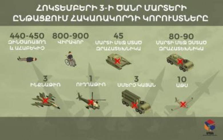 ԲԼՈԳԱրցախի տեղեկատվական շտաբը ներկայացրել է հակառակորդի կորուստները նախորդ օրվա` հոկտեմբերի 3-ի, ընթացքում: