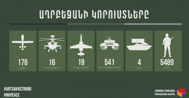 Հակառակորդի կորուստների վերաբերյալ վերջին տվյալներով՝ խոցվել է ևս 3 ԱԹՍ, 20 զրահատեխնիկա, 1 ինքնաթիռ, կա 350 զոհ: