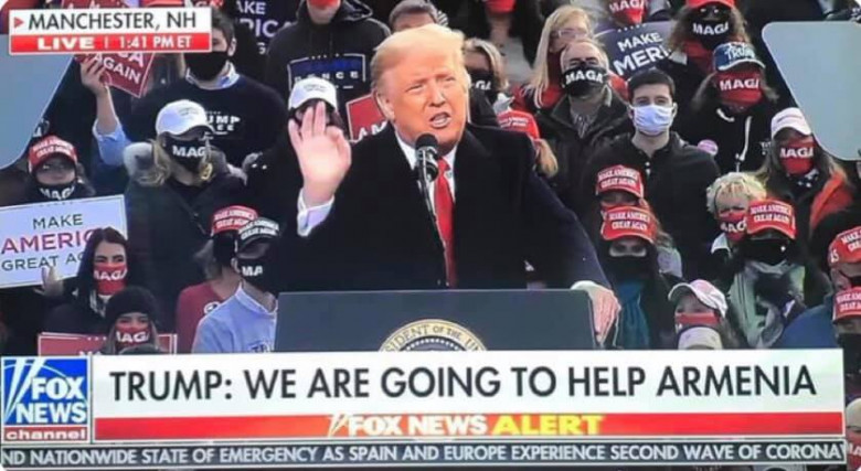 «Դոնալդ Թրամփն այսօր Նյու Հեմշիրում ակնարկեց, որ ԱՄՆ-ն կարող է ճանաչել Արցախի անկախությունը։ Ստորեւ ներկայացնում ենք բառացի մեջբերումը Թրամփի այսօրվա ելույթից։