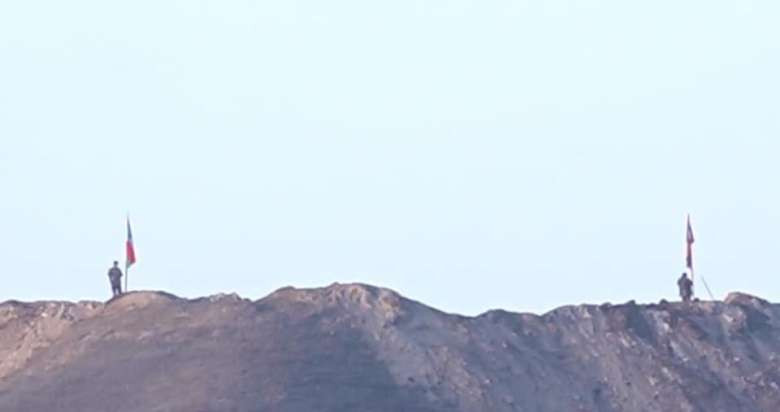 ՀԱՍԱՐԱԿՈՒԹՅՈՒՆՍյունիք, սահմանամերձ Արավուսի դիրքերից մեկը, աջ կողմում հայկական դրոշի տակ կանգնած է հայ զինվորը, ձախում՝ ադրբեջանական դրոշն ու զինվորը։ Լուսանկարը` Գևորգ Թոսունյանի