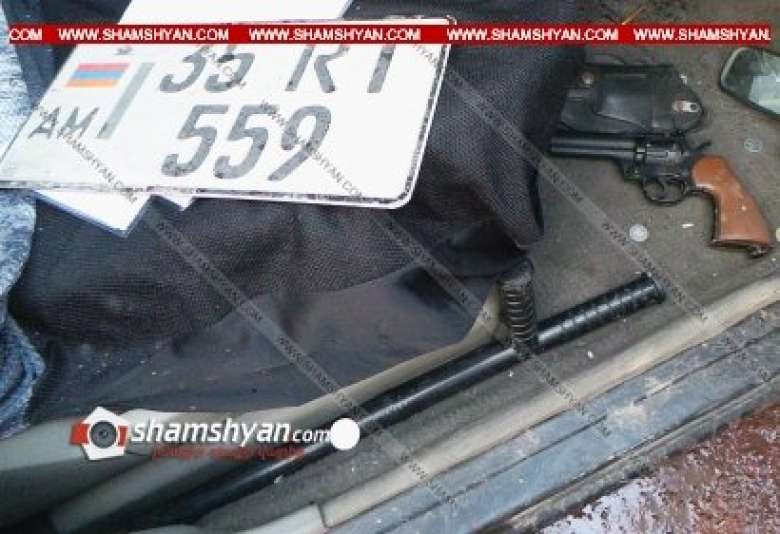 Ոստիկանության ՊՊԾ ծառայողները Nissan March-ի մեջ հայտնաբերել են մարտական ատրճանակ եւ ոստիկանական մահակ (դուբինկա):