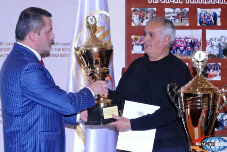 ՍՊՈՐՏԵՐԵՎԱՆ, 18 ԴԵԿՏԵՄԲԵՐԻ, ԱՐՄԵՆՊՐԵՍ: ՀՀ սպորտի և երիտասարդության հարցերի նախարարի տեղակալ Խաչիկ Ասրյանը դրամական պարգևներ և մրցանակներ հանձնեց ՀՀ Նախագահի մրցանակի համար «Լավագույն մարզական բակ», «Լավագույն գյուղական մարզական համայնք», «Լավագույն քաղաքային մարզական համայնք» հանրապետական ստուգատեսների և ՀՀ մարզերում ու ԼՂՀ-ում անցկացված մարզական փառատոնի 2015 թվականի հաղթողներին և մրցանակա կիրներին: