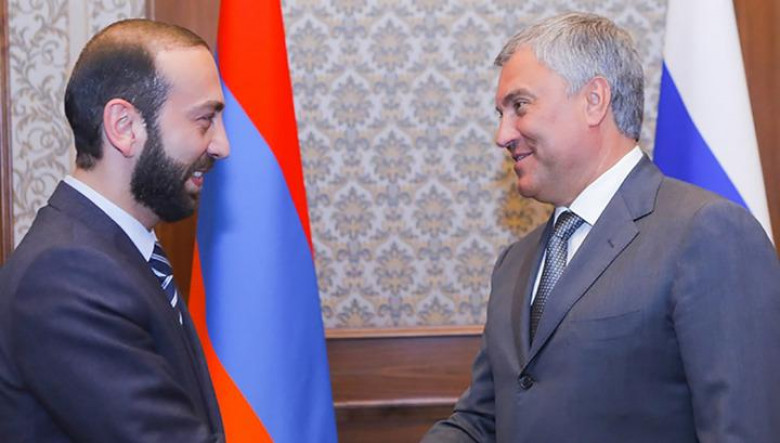 ՔԱՂԱՔԱԿԱՆՌուսական կողմի նախաձեռնությամբ տեղի է ունեցել ՌԴ ԴԺ Պետական դումայի նախագահ Վյաչեսլավ Վոլոդինի եւ ՀՀ Ազգային ժողովի նախագահ Արարատ Միրզոյանի հեռախոսազրույցը: Վոլոդինը շնորհավորել է Հայաստանի խորհրդարանի խոսնակին արտահերթ ընտրություններում համոզիչ հաղթանակի կապակցությամբ եւ հաջողություն մաղթել հետագա գործունեությունում: Կողմերը քննարկել են երկկողմ և բազմակողմ հարթակներում համատեղ հետաքրքրության օրակարգում ընդգրկված հարցեր:
