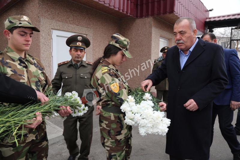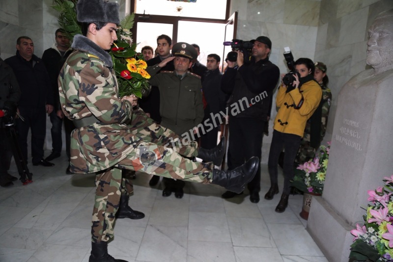 Ներկաները, հյուրերը նախքան միջոցառման մեկնարկը ծաղիկներ խոնարհեցին Երկրապահ կամավորականների միության հավերժ նախագահ, Սպարապետ Վազգեն Սարգսյանի կիսանդրու առջեւ: