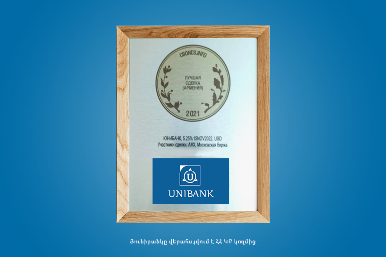 ՀԱՍԱՐԱԿՈՒԹՅՈՒՆՍանկտ Պետերբուրգում տեղի ունեցած ԱՊՀ և բալթյան երկրների 17-րդ համաժողովի Cbonds Awards CIS — 2021 մրցանակաբաշխությանը «Յունիբանկ» ԲԲԸ-ի պարտատոմսերի փոխցուցակումը ճանաչվել է Հայաստանի լավագույն գործարք: Յունիբանկի դոլարային պարտատոմսերը փոխցուցակվել են Մոսկվայի բորսայում 2020թ․-ին։ Փոխցուցակման գործընթացը տեղի է ունեցել AMX - Հայաստանի ֆոնդային բորսայի և Մոսկվայի բորսայի (MOEX) համագործակցության և աջակցության շնորհիվ։