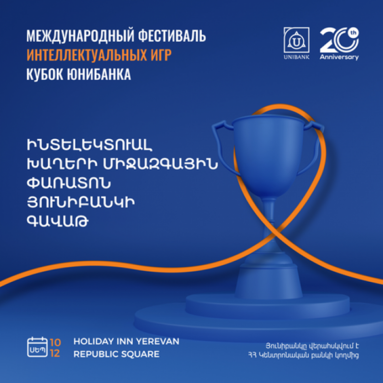 ՀԱՍԱՐԱԿՈՒԹՅՈՒՆ2021թ.-ի սեպտեմբերի 10-12-ը Երևանում տեղի կունենա «Յունիբանկի գավաթ» ինտելեկտուալ խաղերի միջազգային փառատոն: Միջոցառումը նվիրված է Յունիբանկի գործունեության 20-ամյակին: