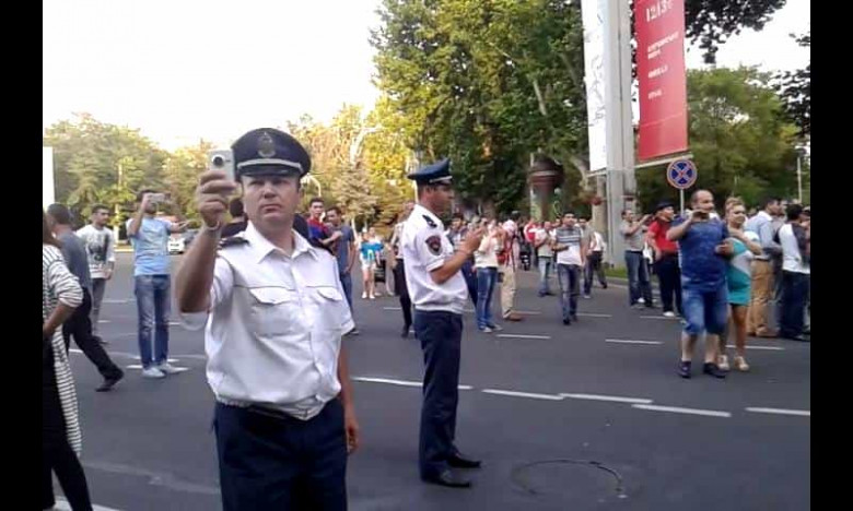 Ցուցարարներից պակաս հետաքրքրված չէ նաև ոստիկանությունը: Նրանցից ոմանք տեսաձայնագրություններ էին անում: Հետաքրքիր է զուգակցել լրագրողի և ոստիկանի մասնագիտությունը: Գուցե դրա պատճառը ցուցարարների՝ «Ոստիկան միացիր» վանկարկումնե՞րն էին: