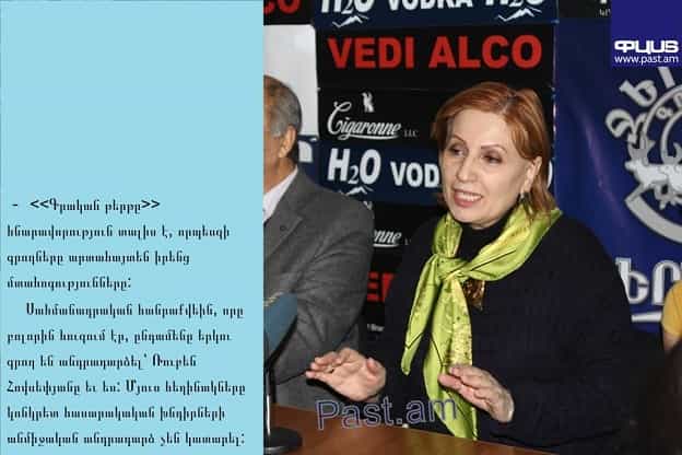 ՔԱՂԱՔԱԿԱՆԱյսօր «Հայելի» մամուլի ակումբում 2015թ. գործունեությունն ամփոփոցին Գրողների միության նախագահ Էդվարդ Միլիտոնյանը եւ «Գրական թերթի», գլխավոր խմբագիր Կարինե Խոդիկյանը: