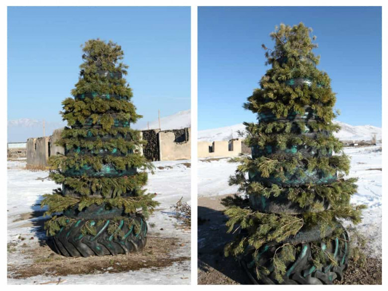 ԲԼՈԳՍա Այրք գյուղում բնակվող 17 տարեկան մի տղայի սարքած տոնածառն է` օգտագործված անիվներով ու եղևնիների ճյուղերով։ Ու մենք դեռ բողոքում ենք, թե Հրապարակի տոնածառի լույսերը «սծիլնի» չեն: Ասենք փոքր կենտրոնում մի 5 հատ տոնածառ է դրված, էլ չենք ասում՝ Երևանի մյուս վարչական շրջաններում: