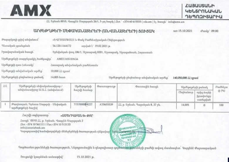 ՀԱՍԱՐԱԿՈՒԹՅՈՒՆ«Եվրոասֆալտ» ՓԲԸ-ն պաշտոնապես հայտարարում է, որ մամուլում տեղ գտած տեղեկատվությունն առ այն, որ ԱԺ նախագահը կամ եղբայրը կապ ունեն ընկերության շահած մրցույթի հետ և այդ մրցույթում հաղթելը կարող է պարունակել կոռուպցիոն ռիսկ, ոչ մի աղերս չունեն իրականության հետ: Ընկերությունը հիմնադրման օրվանից մասնակցել է մի քանի տասնյակ մրցույթների և բազմաթիվ անգամ չի կարողացել շահեկան գին առաջարկել: Վերջերս ընկերությունը երկու մրցույթ է շահել, որի առաջարկած գինը ի սկզբանե չի ենթադրում շահույթ: