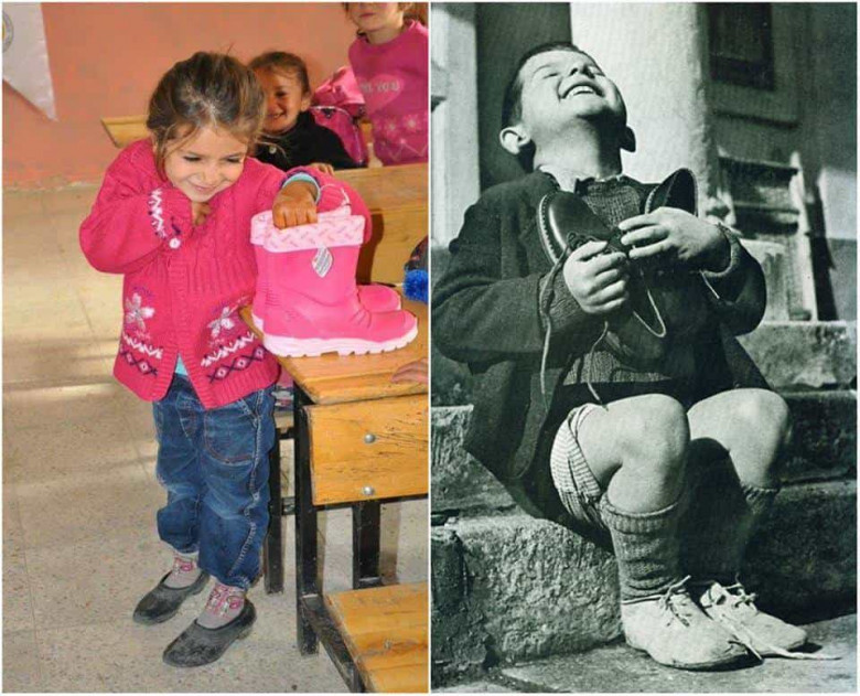 1946 թվականից անցաել է շուրջ 70 տարի ու ես համացանցում հանդիպում եմ մեկ այլ նկարի: Փոքրիկ սիրիացի աղջնակն ուրախանում է նոր կոշիկներ ստանալու առիթով: Կրկին անկեղծ ժպիտ ու կրկին անասելի տխրություն նրա անկեղծ ժպիտի ետևում: Այս փոքրիկնել է որբ, փախստական է ու նրա ծնողներն էլ ամենայն հավանականությամբ Սիրիայում տեղի ունեցող պատերազմի զոհ են դարձել: