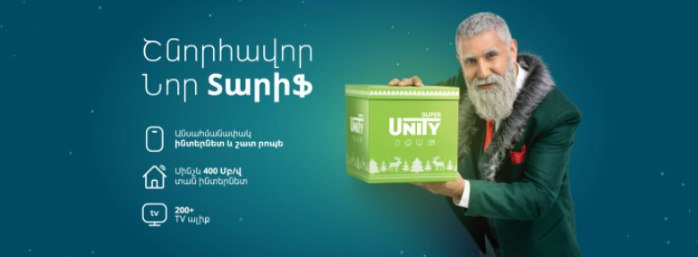 ՀԱՍԱՐԱԿՈՒԹՅՈՒՆ«Ucom» ընկերությունը ներկայացրեց նոր՝ «Unity» տարիֆը, որում միավորված են թե՛ ֆիքսված, թե՛ շարժական կապի ծառայություններն ամբողջ ընտանիքի համար: Միանալով «Unity» տարիֆներին՝ բաժանորդները յուրաքանչյուր ամիս կարող են ստանալ մինչև 400 Մբ/վրկ արագությամբ տան ինտերնետ, 200-ից ավելի հեռուստաալիքներ, շարժական անսահմանափակ ինտերնետ, մինչև 6000 րոպե դեպի տեղական բոլոր ցանցեր, Արցախ, ԱՄՆ և Կանադա զանգելու համար, «Super Wi-Fi» սարք և հատուկ սակագնով մինչև 4 հավելյալ «Unity Super SIM» քարտեր: