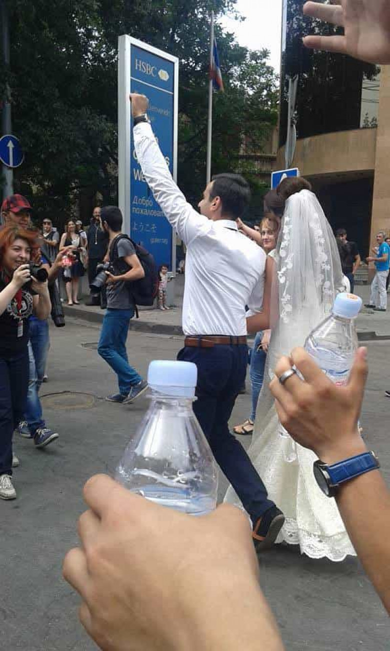 Ցուցարարներից մեկը մոտեցավ, զույգին համբուրեց, շնորհավորեց. «Չմոռանաք, որ Բաղրամյանում պսակվեցիք»: