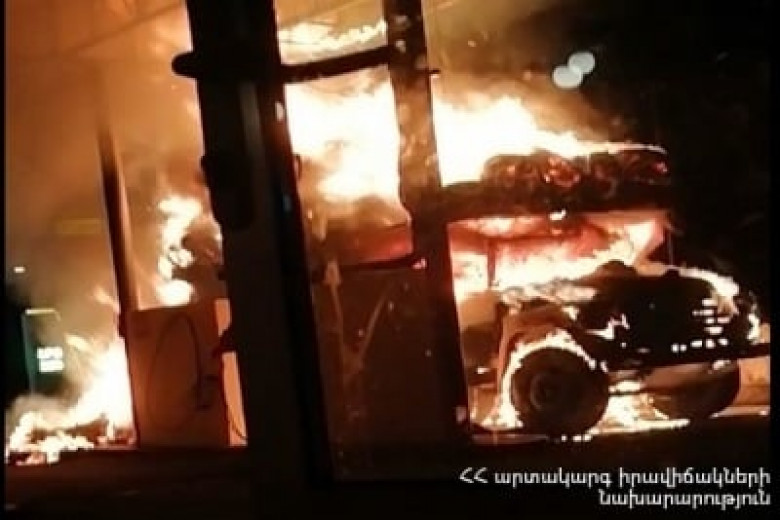 Պարզվել է, որ Երևանյան խճուղում գտնվող ավտոգազալցակայանում այրվում է կայանած «ZIL-130» մակնիշի ավտոմեքենա՝ բեռնված անասնակերով (մոտ 200 հակ)։