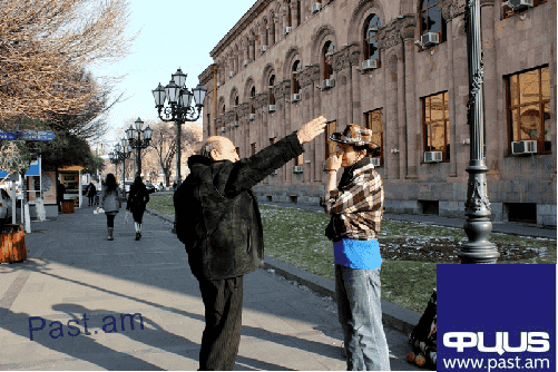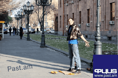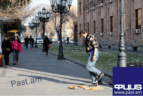 ՀԱՍԱՐԱԿՈՒԹՅՈՒՆԱյսօր մեր ֆոտոթղթակիցը Երեւանի Հանրապետության հրապարակում ականատես է եղել հետեւյալ տեսարանին: Օտարերկրացի մի երիտասարդ ռուսական չեչոտկա է պարում՝ գումար վաստակելու նպատակով: Եվ ահա հայ տաքսիստը, որի հիմնական կայանատեղին հենց այդտեղ է, թերեւս կարծելով, որ իր պարով գումար վաստակող օտարերկրացին խանգարում է իր գործին, փորձում է ամեն գնով համոզել, որ եթե երիտասարդը չեչոտկա պարի այդ տարածքից հեռու՝ ավելի շատ գումար կվաստակի:
