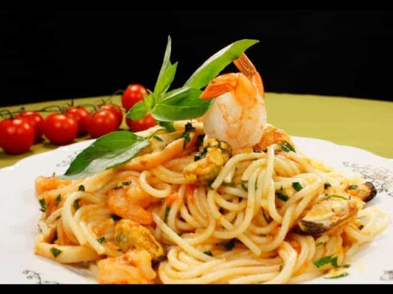 Սպագետի մանրածովախեցգետնով և պիստակով