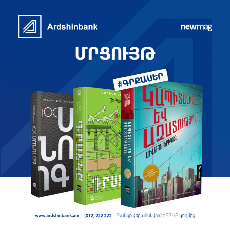 ՀԱՍԱՐԱԿՈՒԹՅՈՒՆԳիրք նվիրելու օրվան ընդառաջ, Արդշինբանկը Newmag հրատարակչության հետ համատեղ, գիրք նվիրելու օրվա կապակցությամբ, հայտարարում է մրցույթ, որի ընթացքում կխաղարկվեն հետևյալ գրքերը