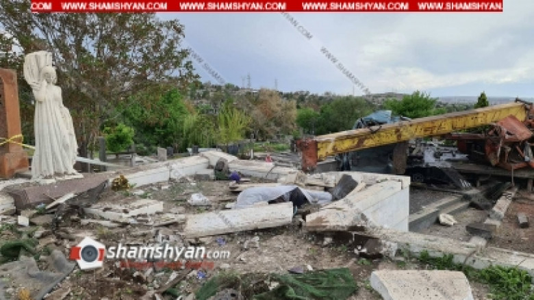 Վթարի հետևանքով կռունկավարը տեղում մահացել է, իսկ ընկնելու հետևանքով մի քանի գերեզմաններ վնասվել են, այդ թվում՝ կոտրվել են մոտ 15 շիրմաքարեր։