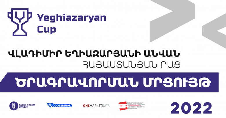 ՀԱՍԱՐԱԿՈՒԹՅՈՒՆՄայիսի 22-ին, Հայ-Ռուսական (Սլավոնական) համալսարանում տեղի կունենա Վլադիմիր Եղիազարյանի անվան ծրագրավորման հայաստանյան բաց մրցույթը։ Կազմակերպիչներներն են Հայ-ռուսական (սլավոնական) համալսարանը (RAU), CodeSignal և OneMarketData ընկերությունները, ինչպես նաև Ձեռնարկությունների ինկուբատոր հիմնադրամը (EIF)։