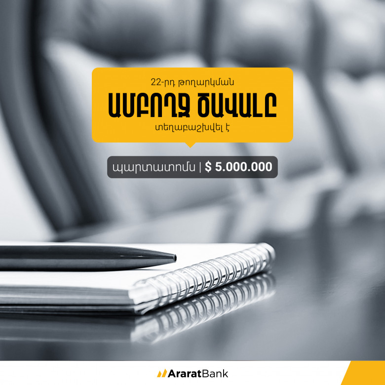ՀԱՍԱՐԱԿՈՒԹՅՈՒՆՍույն թվականի ապրիլի 21-ին ԱՐԱՐԱՏԲԱՆԿ բաց բաժնետիրական ընկերության կողմից թողարկված դոլարային պարտատոմսերն ամբողջությամբ տեղաբաշխվել են։