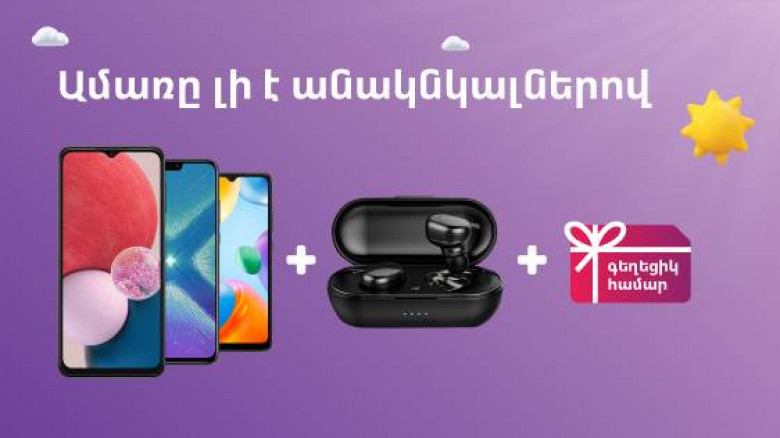 ՀԱՍԱՐԱԿՈՒԹՅՈՒՆԱմառային առաջարկի շրջանակներում մինչև հուլիսի 31-ը ներառյալ Ucom-ում ցանկացած ապրանքանիշի սմարթֆոն ձեռք բերելու դեպքում բոլոր բաժանորդները կստանան անլար ականջակալ, ինչպես նաև գեղեցիկ հեռախոսահամար: Ավելին, գնորդները կունենան Level Up 1700 սակագնային պլանից 1 ամիս անվճար օգտվելու հնարավորություն:
