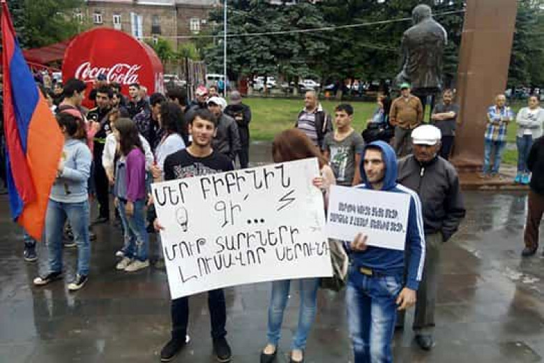 Այս պահին Գյումրիում բողոքի ակցիա է անցկացվում, բայց հավաքն ավելի փոքրաթիվ է և խաղաղ: