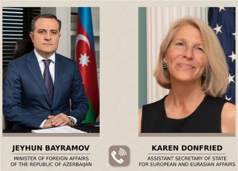 ՄԻՋԱԶԳԱՅԻՆԱդրբեջանի արտգործնախարար Ջեյհուն Բայրամովը և ԱՄՆ պետքարտուղարի Եվրոպայի և Եվրասիայի հարցերով օգնական Կարեն Դոնֆրիդը հեռախոսազրույց են ունեցել։ Այս մասին հայտնում են Ադրբեջանի ԱԳՆ մամուլի ծառայությունից․ տեղեկացնում են ադրբեջանական ԶԼՄ-ները։