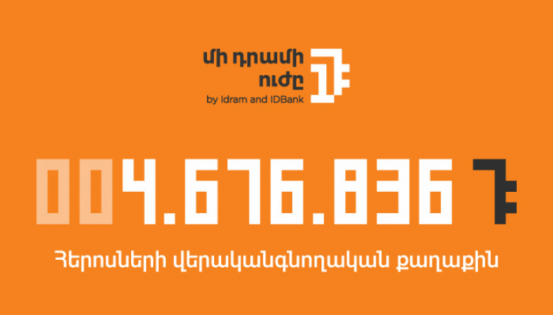 ՀԱՍԱՐԱԿՈՒԹՅՈՒՆIDBank-ի և Իդրամի համատեղ «Մի դրամի ուժը» նախաձեռնության շրջանակում օգոստոս ամսվա ընթացքում հավաքված ողջ գումարը՝ 4․676․836 դրամ, փոխանցվեց «Հերոսների վերականգնողական քաղաք» հոգեբանական կենտրոնին։ Ծրագրի ավարտին ընկերությունները հայտարարեցին նաև հաջորդ շահառուի անունը։ Սեպտեմբեր ամսվա ընթացքում կուտակվող ողջ գումարն ուղղվելու է «4090» հիմնադրամին։