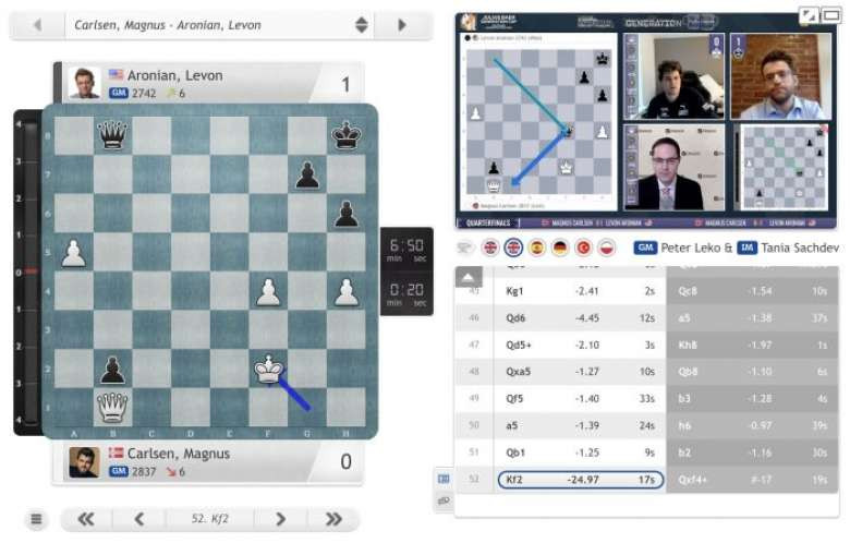 Շախմատի Հայաստանի հավաքականի նախկին առաջատար (ԱՄՆ) Լեւոն Արոնյանը պարտության մատնեց աշխարհի չեմպիոն, համաշխարհային դասակարգման առաջատար, նորվեգացի Մագնուս Կարլսենին Julius Baer Generation Cup օնլայն մրցաշարի քառորդ եզրափակիչի առաջին պարտիայում։
