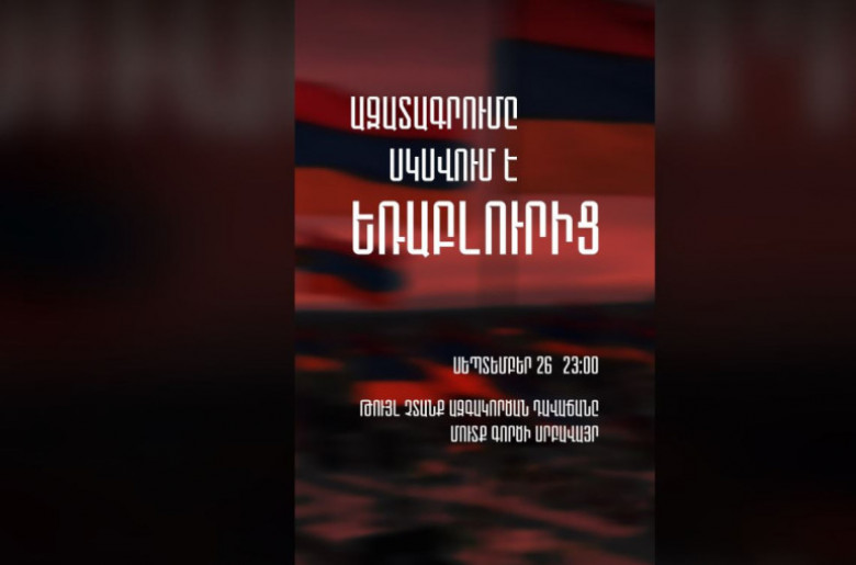 Մենք՝ Եռաբլուրի հերոսածին ծնողներս, հավատարիմ մնալով աննահանջ պայքարի և մեր տղաների ազգանվեր գործի շարունակության խոստմանը, սեպտեմբերի 26-ին՝ ժամը 23։00-ից սկսած, հավաքվում ենք Եռաբլուրում, որպեսզի սեպտեմբերի 27-ի վաղ առավոտյան կանխենք ազգակործան դավաճանի մուտքը պանթեոն։
